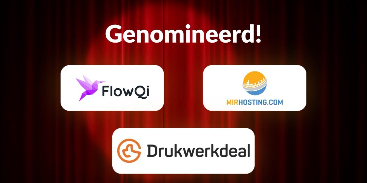 Drie nominaties voor drie verschillende klanten. Dat maakt ons trots. We feliciteren Drukwerkdeal, MIRhosting en FlowQI van harte met deze mooie erkenning. En natuurlijk duimen we voor de winst.